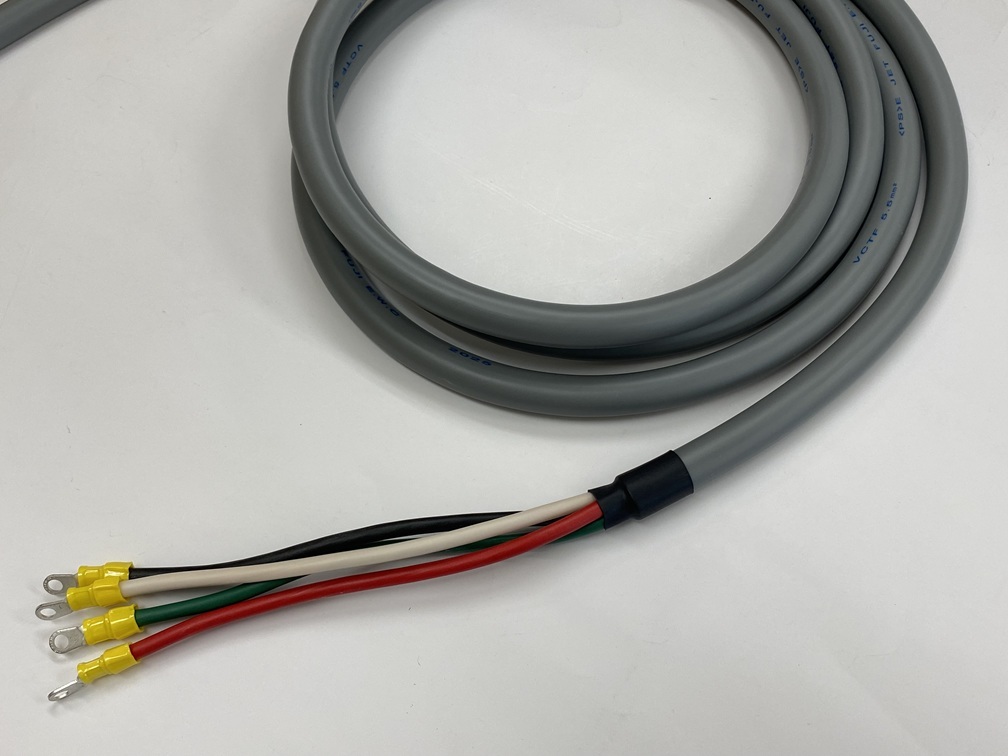 ニチフ絶縁被覆付丸端子TMEXとVCTFのハーネス加工、小LOTから対応可能です。画像の製品は、絶縁被覆付丸端子に TMEX5.5-4N、ケーブルに富士電線工業 VCTF5.5SQ×4C を使用しています。お見積りは、ハーネス見積り依頼バナーより図面を添付してご連絡ください。宜しくお願い致します。